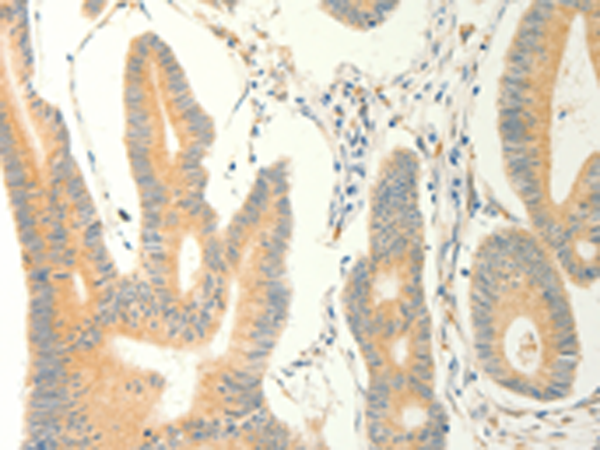 The image is immunohistochemistry of paraffin-embedded Human colon cancer tissue using P07334(ERG Antibody) at dilution 1/40. (Original magnification: ×200) |