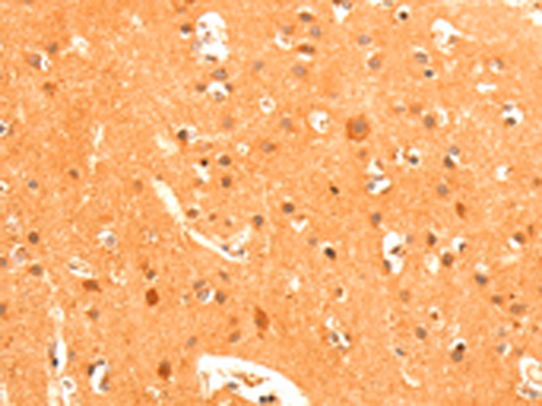 The image is immunohistochemistry of paraffin-embedded Human brain tissue using P07327(GRM3 Antibody) at dilution 1/50. (Original magnification: ×200) |