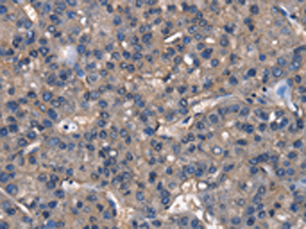 The image is immunohistochemistry of paraffin-embedded Human liver cancer tissue using P07367(IGFBP5 Antibody) at dilution 1/25. (Original magnification: ×200) |