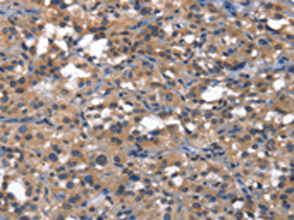 The image is immunohistochemistry of paraffin-embedded Human thyroid cancer tissue using P07367(IGFBP5 Antibody) at dilution 1/25. (Original magnification: ×200) |