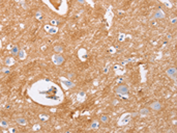 The image is immunohistochemistry of paraffin-embedded Human brain tissue using P07370(IGSF8 Antibody) at dilution 1/15. (Original magnification: ×200) |