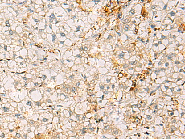 The image is immunohistochemistry of paraffin-embedded Human liver cancer tissue using P07377(IL18 Antibody) at dilution 1/40. (Original magnification: ×200) |