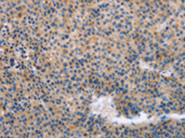 The image is immunohistochemistry of paraffin-embedded Human liver cancer tissue using P07406(KLF15 Antibody) at dilution 1/30. (Original magnification: ×200) |